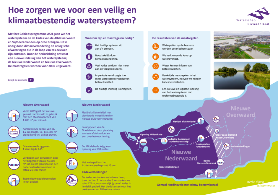 Het waterschap Rivierenland werkt aan het Gebiedsprogramma A5H. Dit programma gaat het watersysteem in de Alblasserwaard en Vijfheerenlanden anders inrichten.