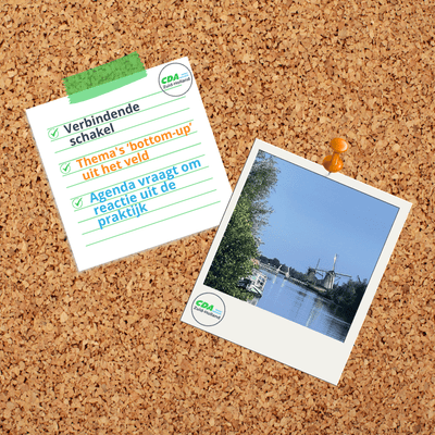 Schoon en veilig water is belangrijk voor iedereen. Daarom laten wij binnen het CDA zien wat er leeft in het veld. Wij zorgen ervoor dat onze politieke vertegenwoordigers weten wat er speelt. Zo kunnen zij zich inzetten voor goede besluiten in de waterschappen en in Provinciale Staten.