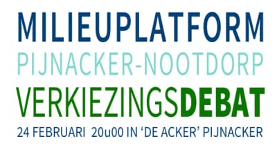 In het kader van de gemeenteraadsverkiezing op 18 maart a.s. debatteren de lijsttrekkers van de plaatselijke politieke partijen op 24 februari 2026 om 20.00 uur in De Acker, Park Berkenoord 2 in Pijnacker over duurzaamheid, natuur en milieu. Dit verkiezingsdebat wordt georganiseerd door het Milieuplatform.