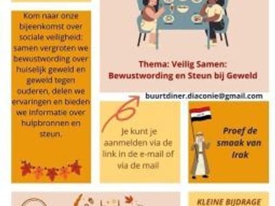 11 sep 2024 CDA verzorgt thema over sociale (on) veiligheid en huiselijk geweld tijdens het Buurtdiner in de Nieuwe Kerk op 11 september aanvang 16.30 uur.
